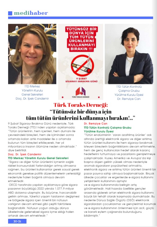 Basında Türk Toraks Derneği "9 Şubat Sigarayı Bırakma Günü"