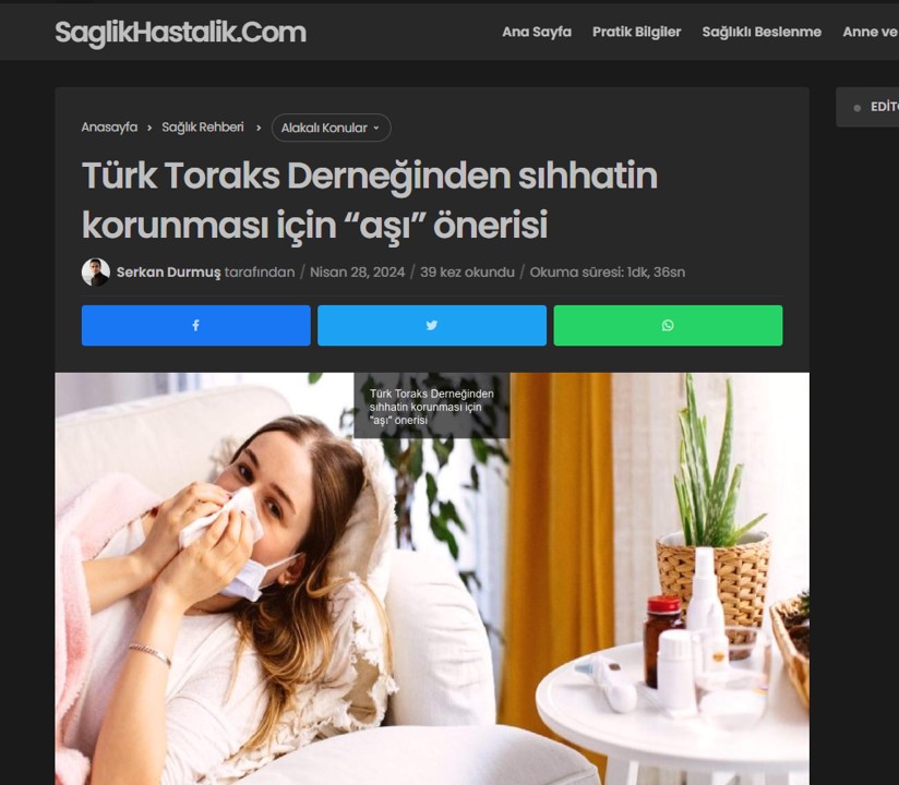 Basında Türk Toraks Derneği Solunum Sistemi Enfeksiyonları Çalışma Grubu "24-30 Nisan Dünya Bağışıklama Haftası" Basın Bildirisi