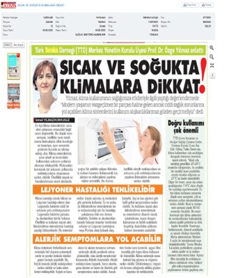 Basında Türk Toraks Derneği "Klima Kullanımının Sağlımıza Etkileri ve Doğru Klima Kullanımı"