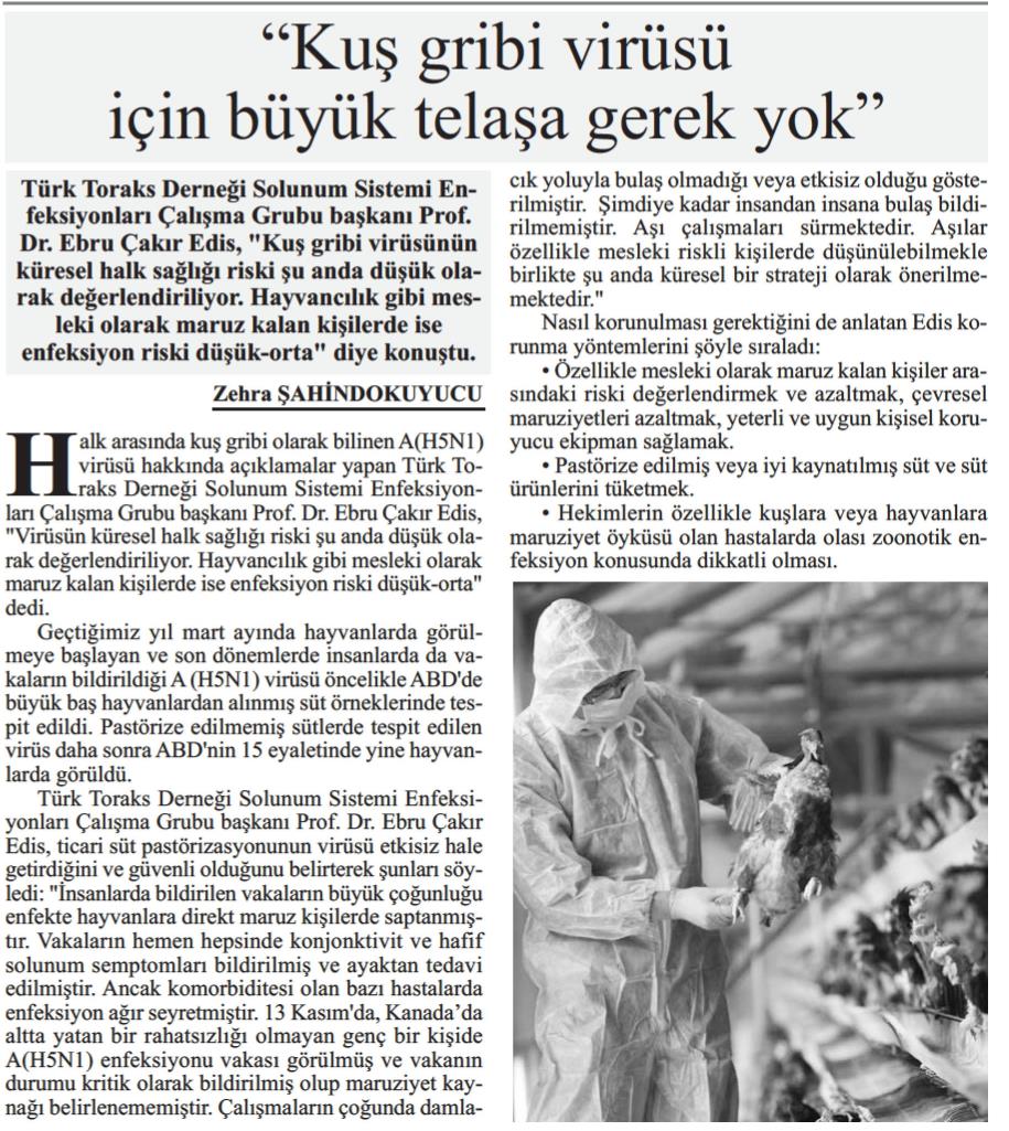 Basında Türk Toraks Derneği Solunum Sistemi Enfeksiyonları Çalışma Grubu "İnfluenza A(H5) Virüsü ve Olguların Değerlendirilmesi" Basın Bildirisi