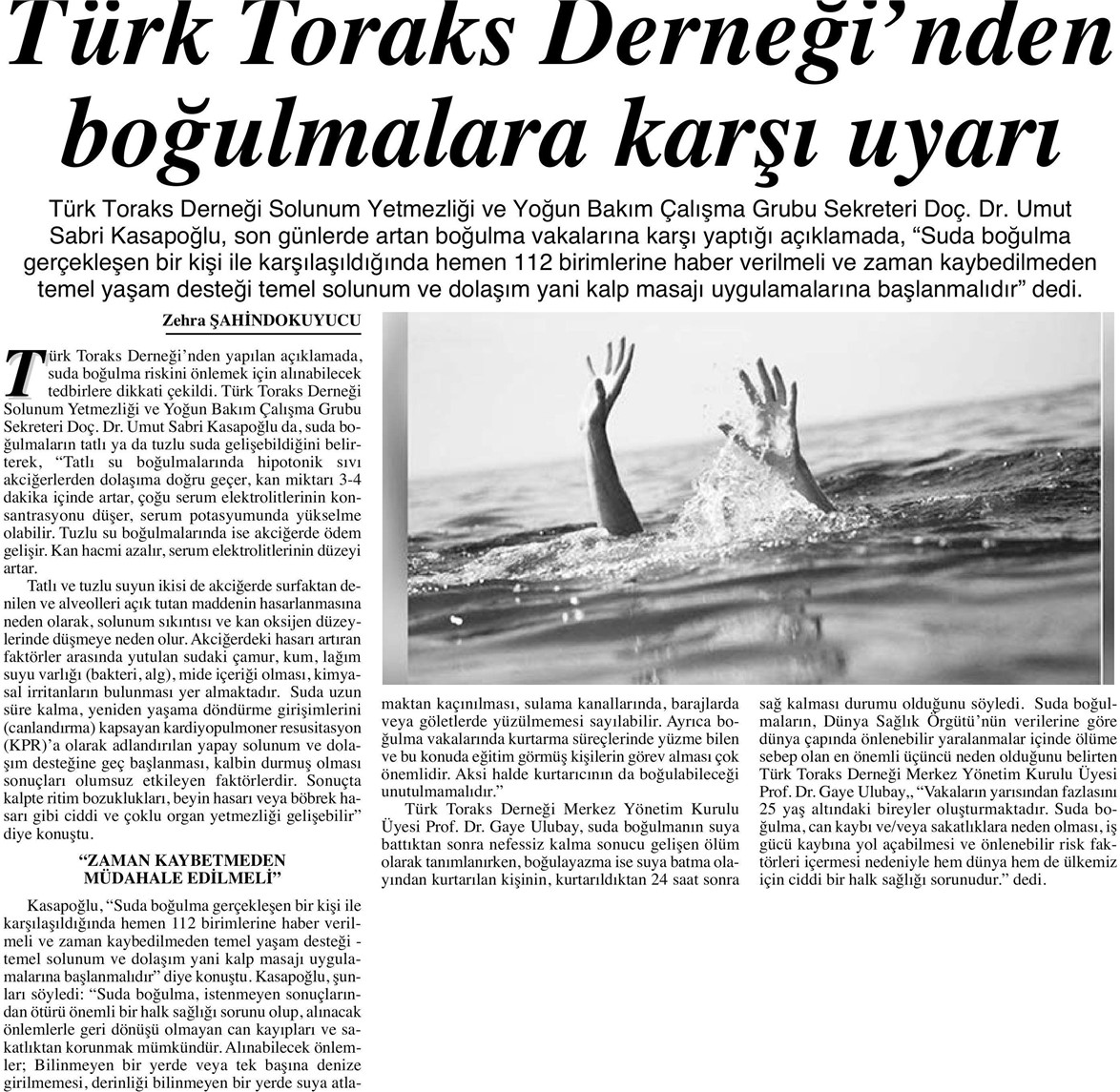 Basında Türk Toraks Derneği "Suda Boğulmalar"