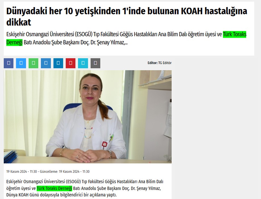 20 Kasım 2024 Dünya KOAH Günü ile ilgili basın yansımalarına aşağıdaki linkten ulaşabilirsiniz.
