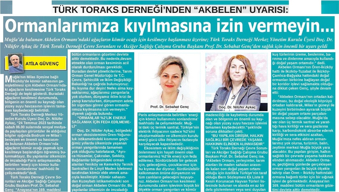 Basında Türk Toraks Derneği “Akbelen Ormanı”