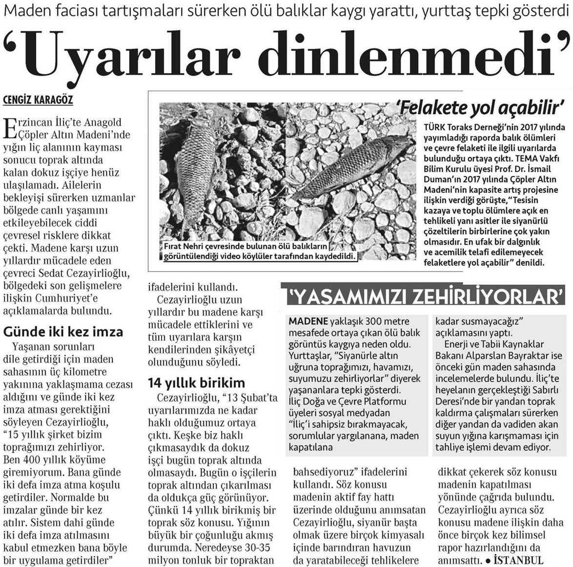 Basında Türk Toraks Derneği Çevre Sorunları ve Akciğer Sağlığı Çalışma Grubu "Yine Erzincan İliç, Yine Siyanür! Sağlıklı Bir Çevrede Yaşama Hakkımız Gasbediliyor!" Bilgilendirme Notu