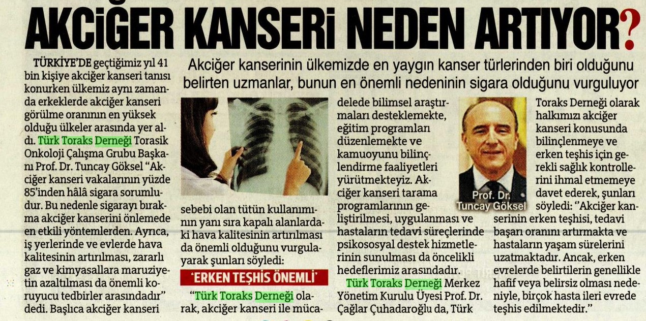 Basında Türk Toraks Derneği Torasik Onkoloji Çalışma Grubu "1 Ağustos Dünya Akciğer Kanseri Günü" Basın Bildirisi