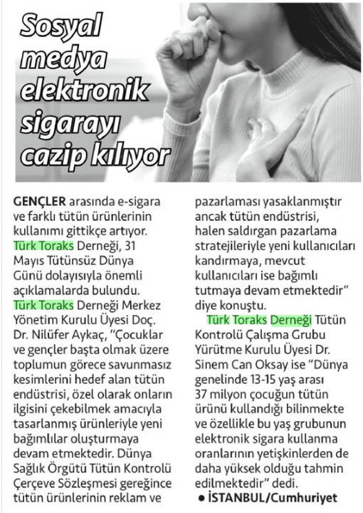 Basında Türk Toraks Derneği Tütün Kontrolü Çalışma Grubu "31 Mayıs Tütünsüz Dünya Günü" Basın Bildirisi