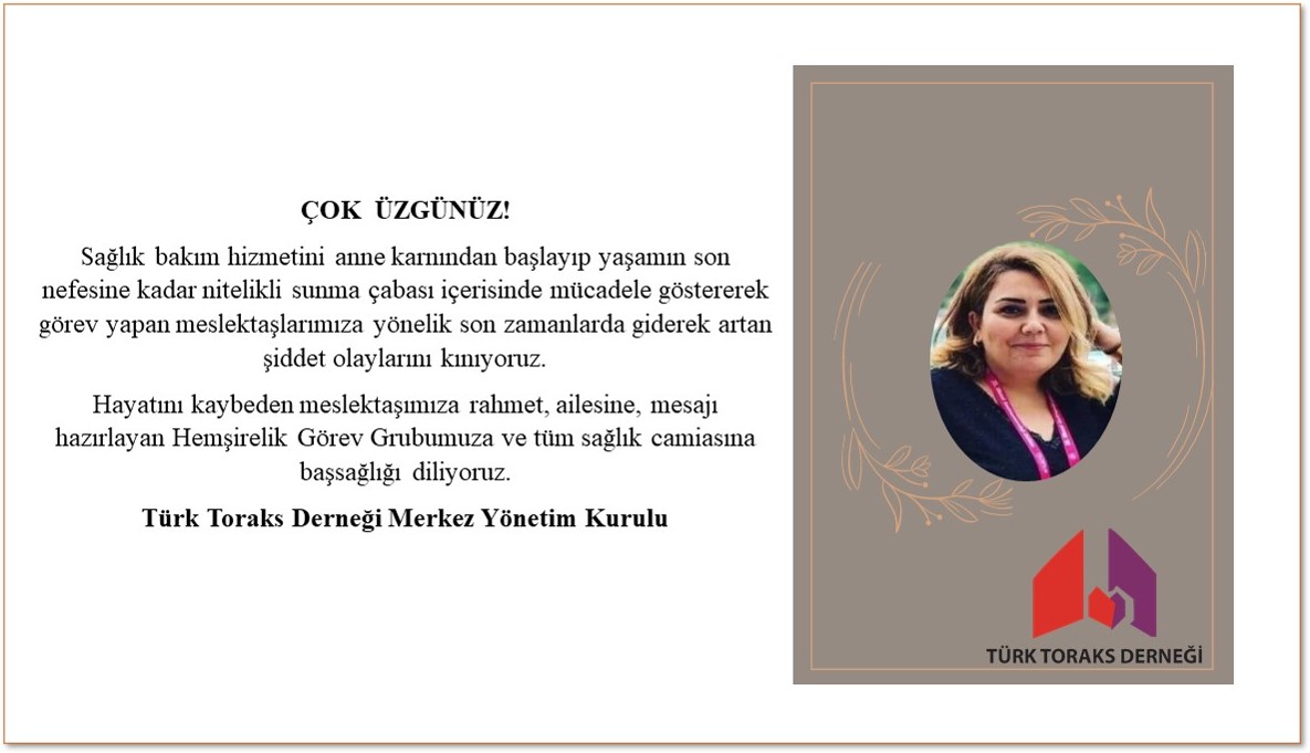 Hayatını kaybeden meslektaşımıza rahmet, ailesine, mesajı hazırlayan Hemşirelik Görev Grubumuza ve tüm sağlık camiasına başsağlığı diliyoruz.
