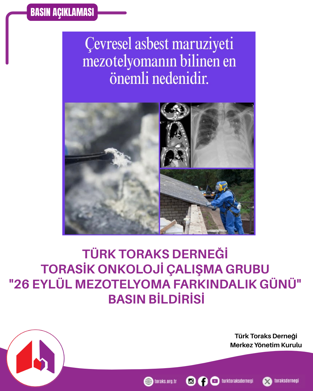 Türk Toraks Derneği Torasik Onkoloji Çalışma Grubu "26 Eylül Mezotelyoma Farkındalık Günü" Basın Bildirisi