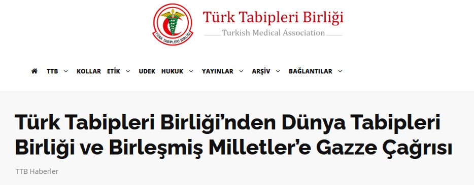 Türk Tabipleri Birliği’nden Dünya Tabipleri Birliği ve Birleşmiş Milletler’e Gazze Çağrısı