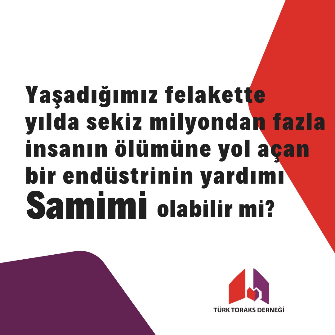 Türk Toraks Derneği' nin "Yaşadığımız Felakette Yılda Sekiz Milyondan Fazla İnsanın Ölümüne Yol Açan Bir Endüstrinin Yardımı Samimi Olabilir mi?" başlıklı basın bildirisine aşağıdaki linkten ulaşabilirsiniz.