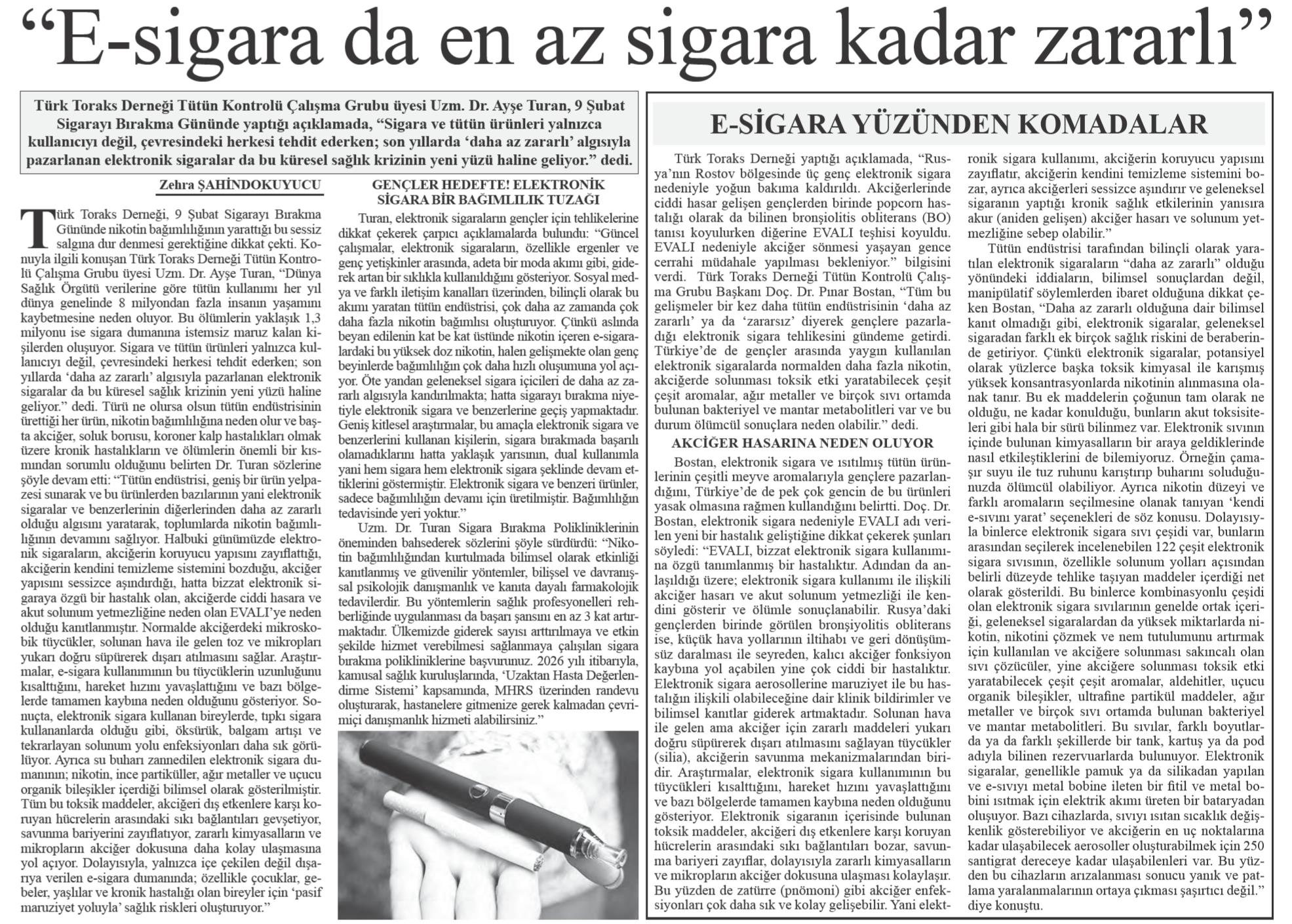 Basında Türk Toraks Derneği Tütün Kontrolü Çalışma Grubu "9 Şubat Sigarayı Bırakma Günü" Basın Bildirisi