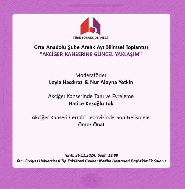 Türk Toraks Derneği Orta Anadolu Şube Aralık Ayı Bilimsel Toplantı Duyurumuz: "Akciğer Kanserine Güncel Yaklaşım"