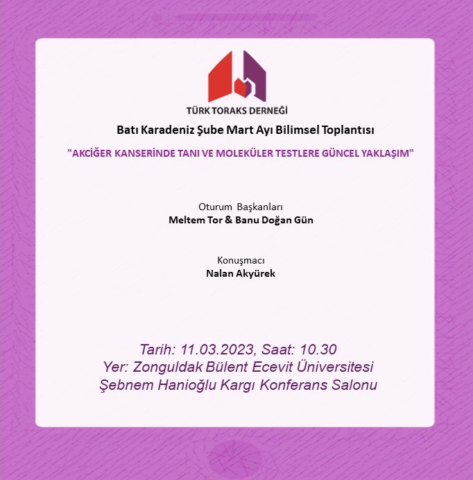 Türk Toraks Derneği Batı Karadeniz Şubesi Mart Ayı Bilimsel Toplantı Duyurumuz: "Akciğer Kanserinde Tanı ve Moleküler Testlere Güncel Yaklaşım"