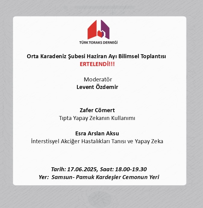 Türk Toraks Derneği Orta Karadeniz Şubesi Haziran Ayı Bilimsel Toplantısı Ertelendi
