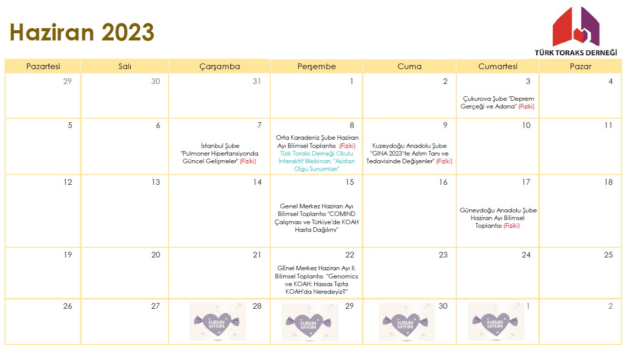 Türk Toraks Derneği Haziran 2023 Etkinlik Takvimi