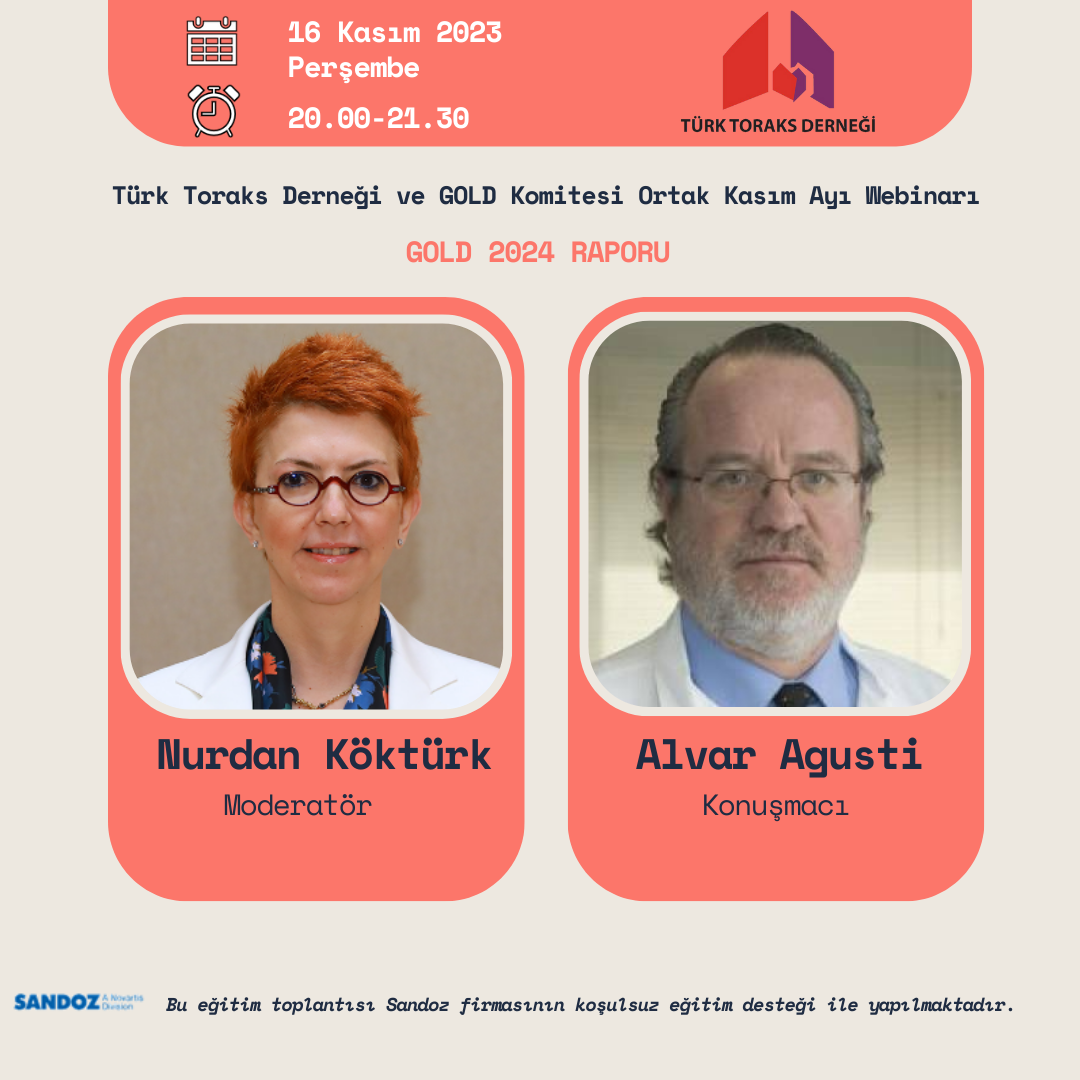 Türk Toraks Derneği ve GOLD Komitesi ortak Kasım ayı webinarı 16 Kasım 2023 Perşembe günü, 20.00-21.30 saatleri arasında gerçekleşecektir.