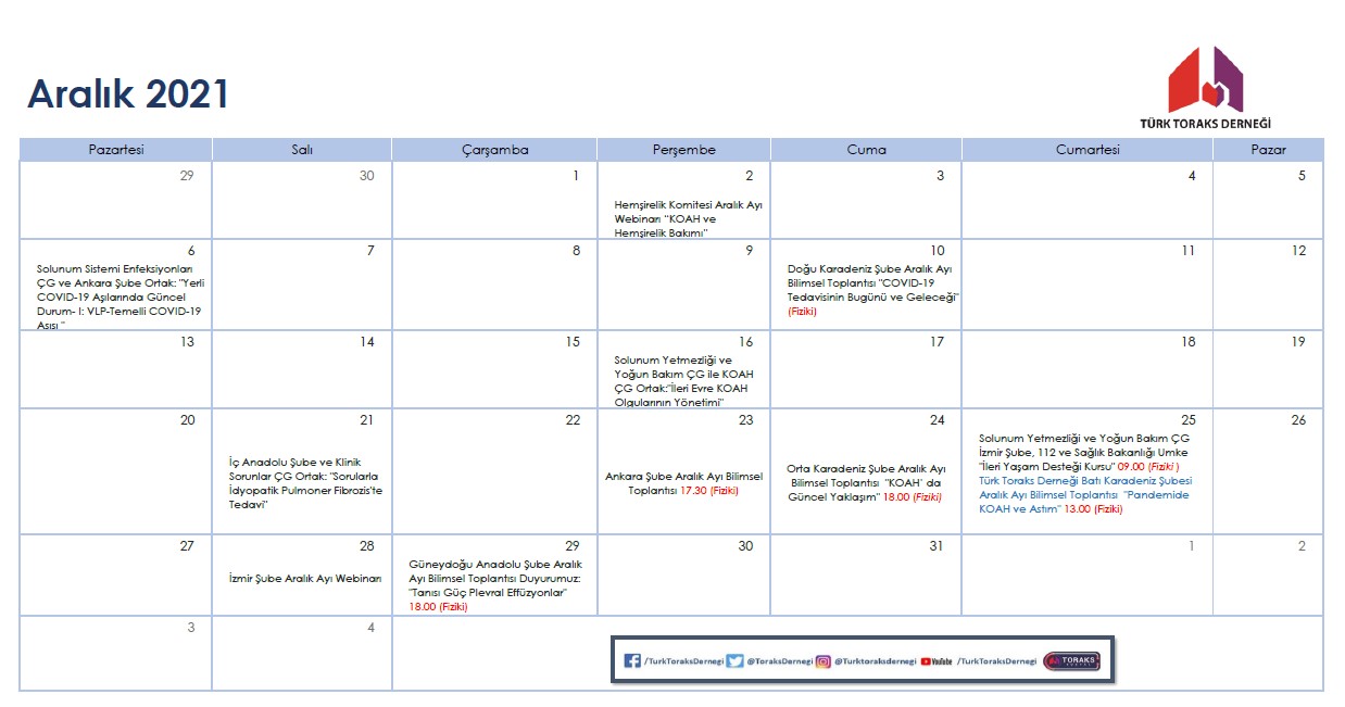 Türk Toraks Derneği Aralık 2021 Etkinlik Takvimi
