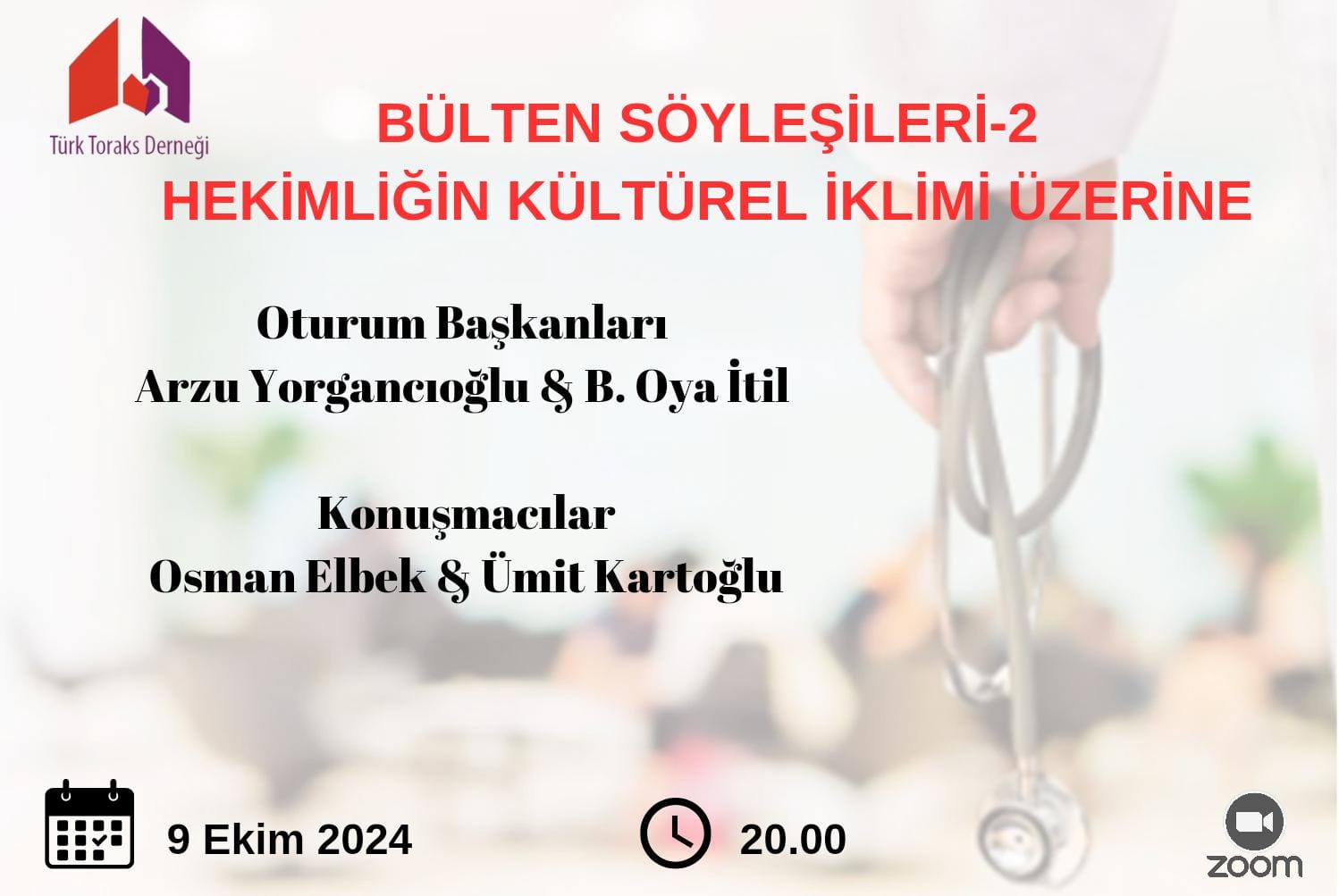 Türk Toraks Derneği Bülten Komitesi Ekim ayı webinarı 9 Ekim 2024 Çarşamba günü, saat 20.00 da online olarak gerçekleştirilecektir.