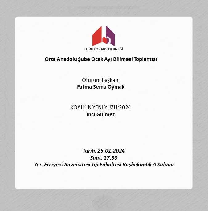Türk Toraks Derneği Orta Anadolu Şube Ocak Ayı Bilimsel Toplantı Duyurumuz