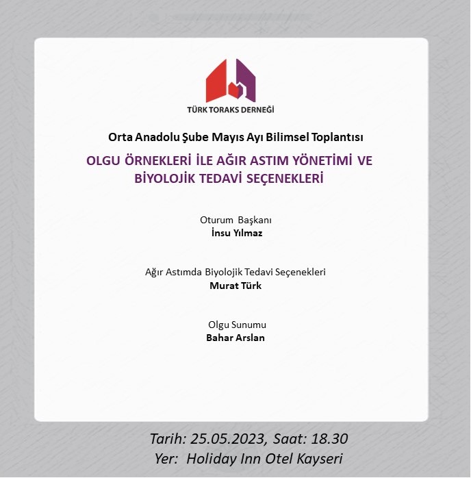 Türk Toraks Derneği Orta Anadolu Şube Mayıs Ayı Bilimsel Toplantı Duyurumuz: "Olgu Örnekleri ile Ağır Astım Yönetimi ve Biyolojik Tedavi Seçenekleri"