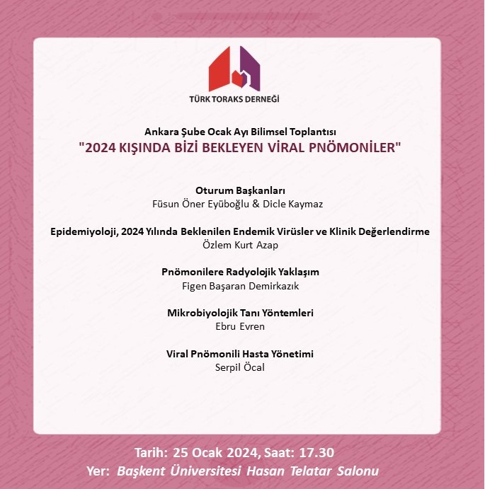 Türk Toraks Derneği Ankara Şubesi Ocak Ayı Bilimsel Toplantı Duyurumuz: "2024 Kışında Bizi Bekleyen Viral Pnömoniler"