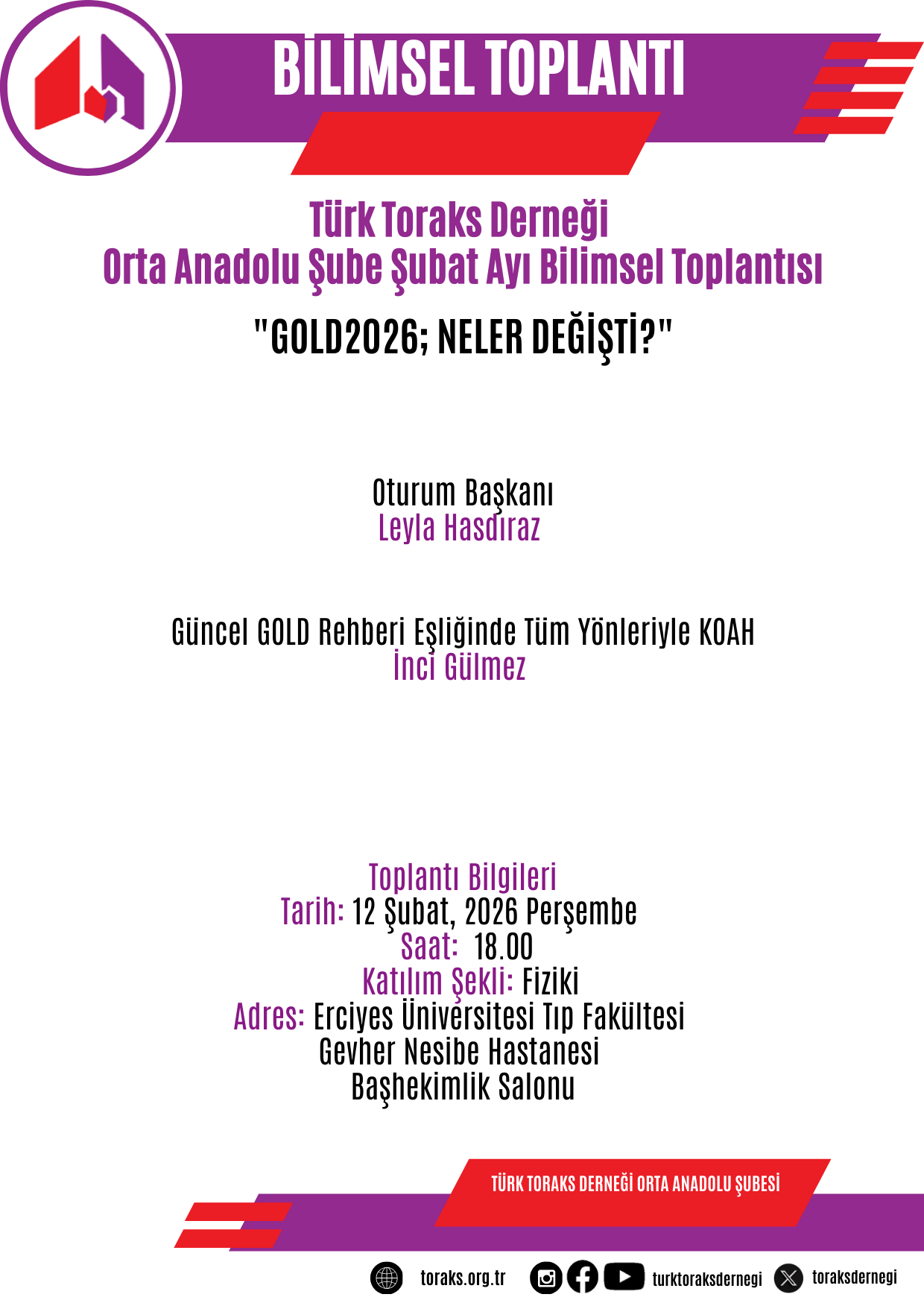 Türk Toraks Derneği Orta Anadolu Şube Şubat Ayı Bilimsel Toplantı Duyurumuz: "GOLD2026; Neler Değişti? "