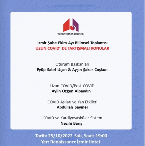 Türk Toraks Derneği İzmir Şubesi Ekim Ayı Bilimsel Toplantı Duyurumuz: "Uzun COVID’ de Tartışmalı Konular"