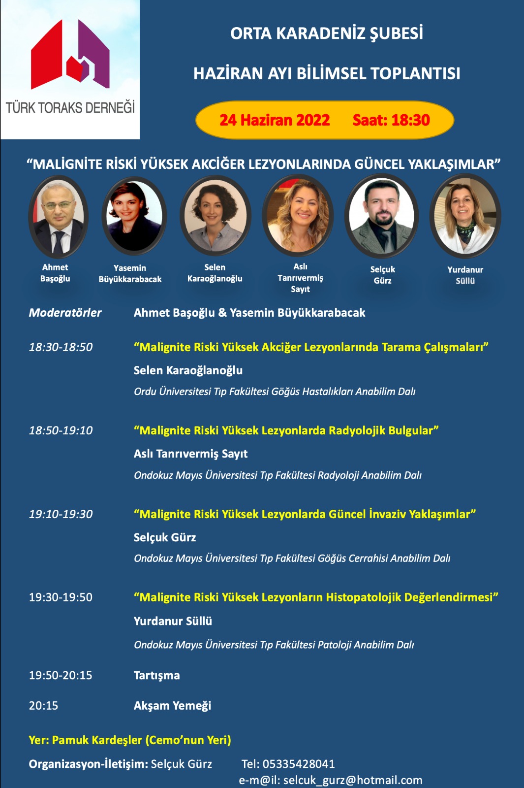 Türk Toraks Derneği Orta Karadeniz Şubesi Haziran Ayı Bilimsel Toplantısı Duyurumuz: "Malignite Riski Yüksek Akciğer Lezyonlarında Güncel Yaklaşımlar"