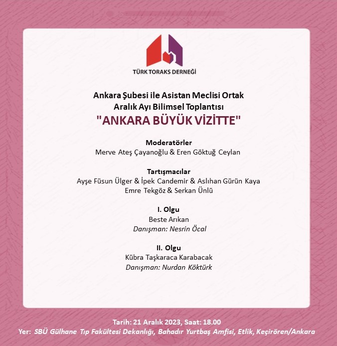 Türk Toraks Derneği Ankara Şubesi ile Asistan Meclisi Ortak Aralık Ayı Bilimsel Toplantı Duyurumuz: "Ankara Büyük Vizitte"