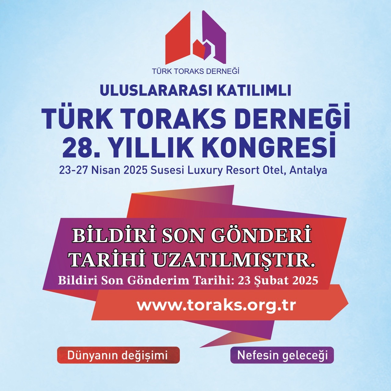 Türk Toraks Derneği 28. Yıllık Kongresi bildiri son gönderi tarihi uzatılmıştır.