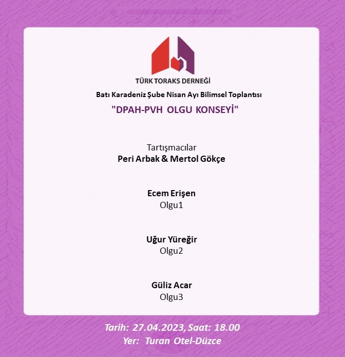 Türk Toraks Derneği Batı Karadeniz Şubesi Nisan Ayı Bilimsel Toplantı Duyurumuz: "DPAH-PVH Olgu Konseyi"