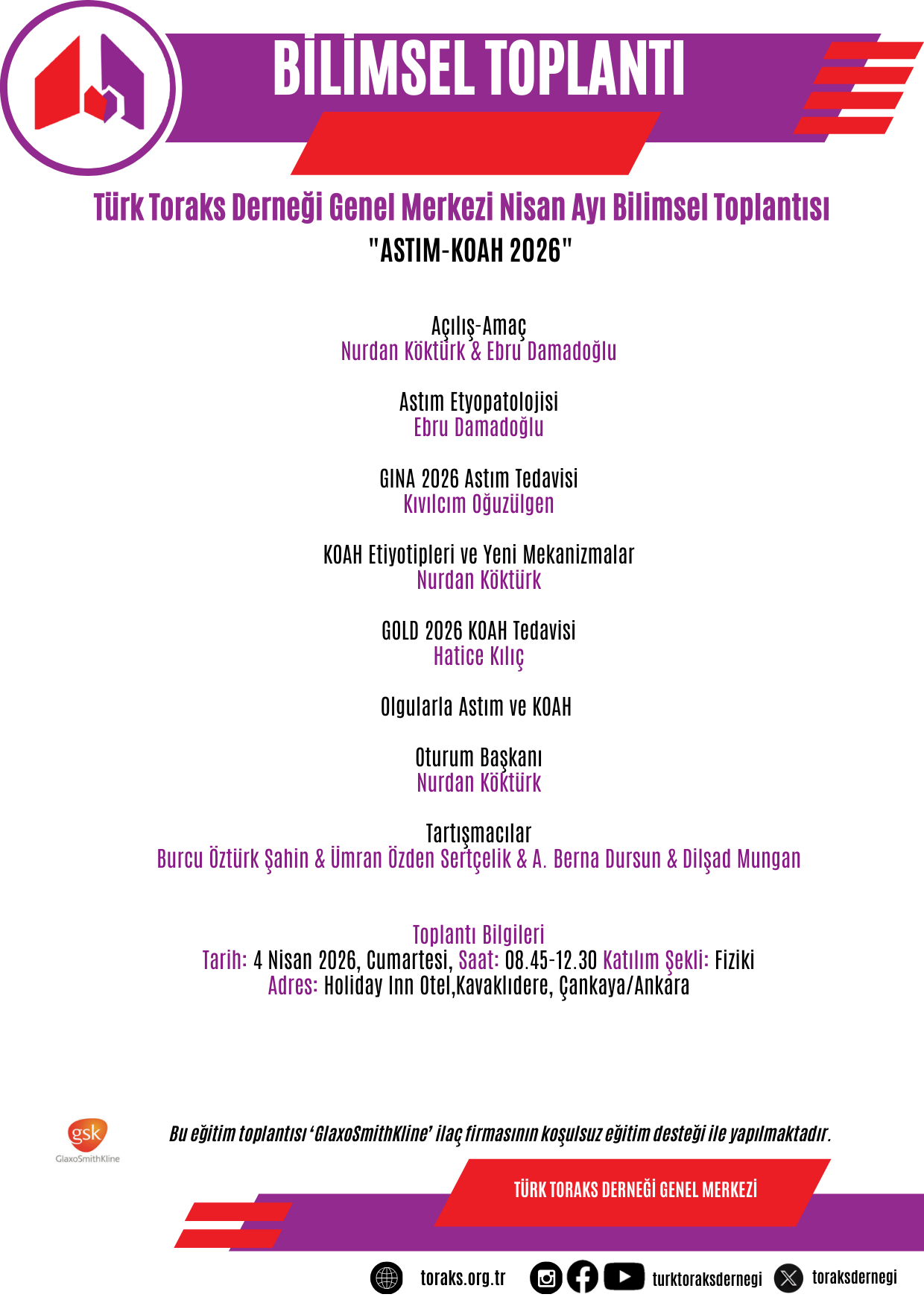 Türk Toraks Derneği Genel Merkezi Nisan Ayı Bilimsel Toplantı Duyurumuz: "Astım-KOAH 2026"
