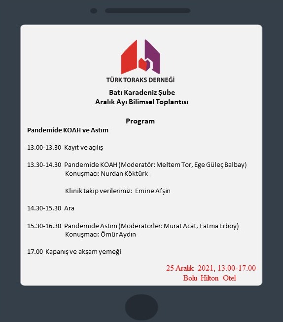 Türk Toraks Derneği Batı Karadeniz Şubesi Aralık Ayı Bilimsel Toplantısı Duyurumuz: "Pandemide KOAH ve Astım"