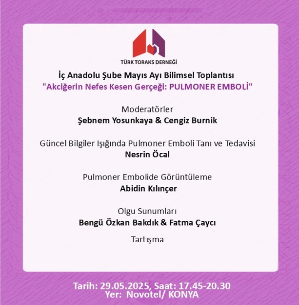 Türk Toraks Derneği İç Anadolu Şube Mayıs Ayı Bilimsel Toplantı Duyurumuz: "Akciğerin Nefes Kesen Gerçeği: PULMONER EMBOLİ"