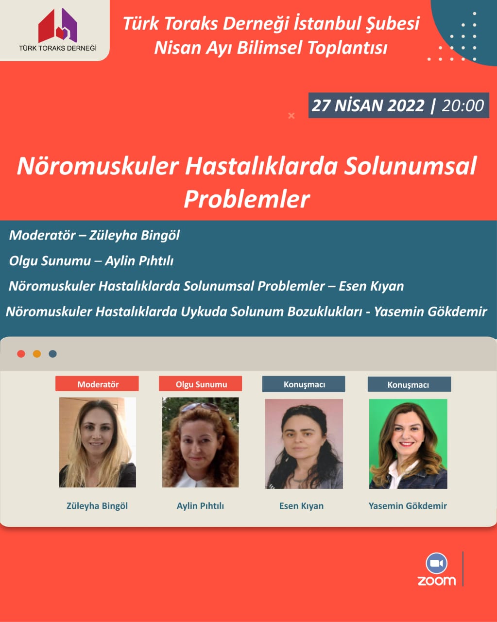 Türk Toraks Derneği İstanbul Şubesi Nisan ayı webinarı 27 Nisan 2022 Çarşamba günü, 20.00-22.00 saatleri arasında gerçekleşecektir.