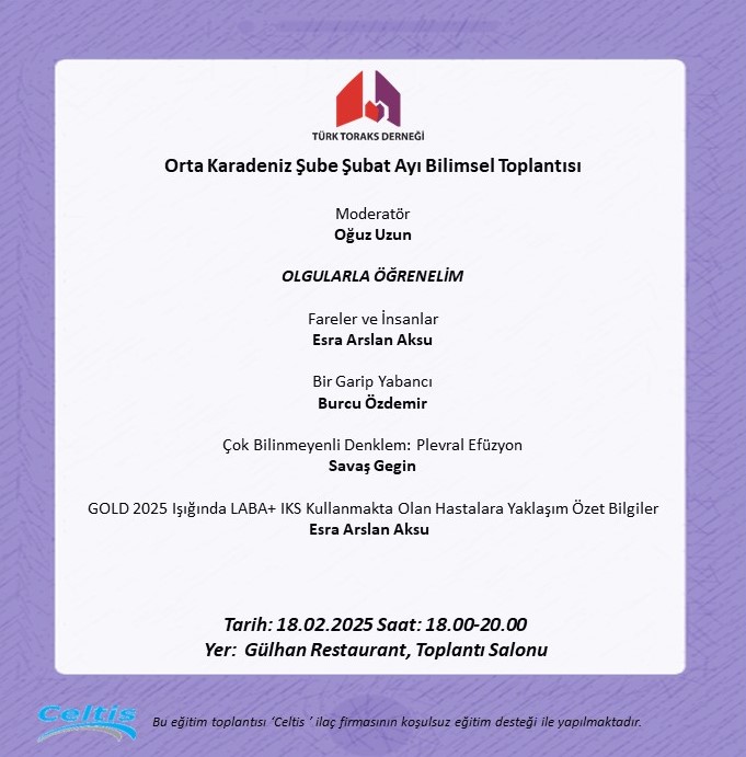 Türk Toraks Derneği Orta Karadeniz Şubesi Şubat Ayı Bilimsel Toplantı Duyurumuz