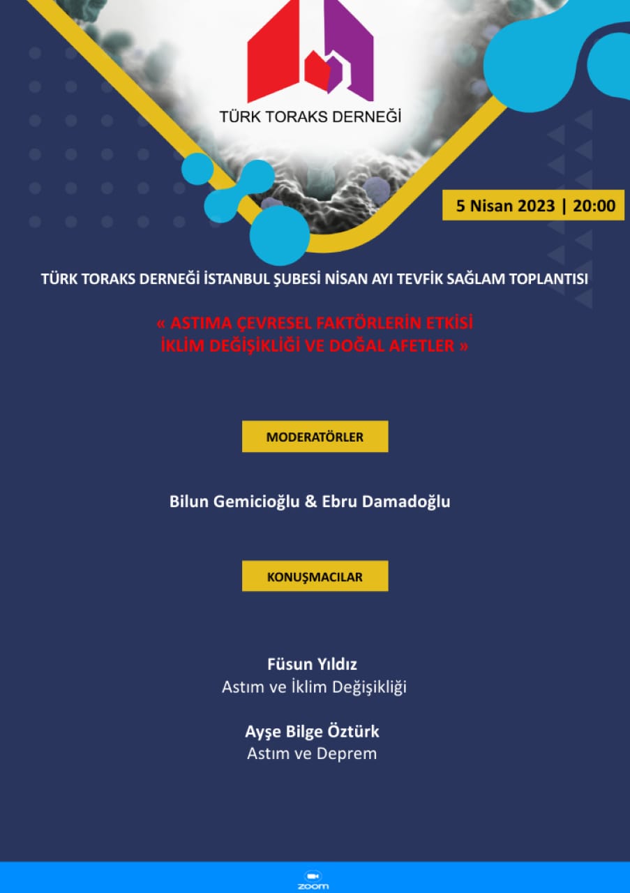 Türk Toraks Derneği İstanbul Şubesi Nisan Ayı Tevfik Sağlam Toplantısı Duyurumuz "Astıma Çevresel Faktörlerin Etkisi İklim Değişikliği ve Doğal Afetler"