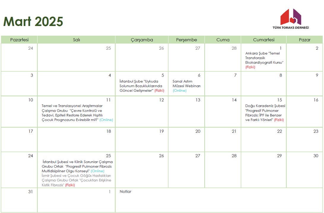 Türk Toraks Derneği Mart 2025 Etkinlik Takvimi
