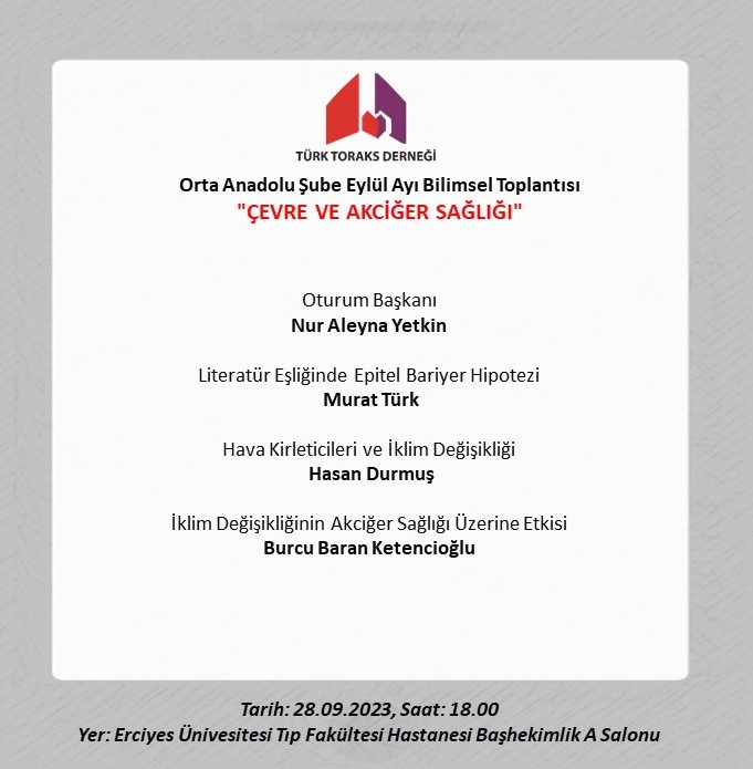 Türk Toraks Derneği Orta Anadolu Şube Eylül Ayı Bilimsel Toplantı Duyurumuz: "Çevre ve Akciğer Sağlığı"