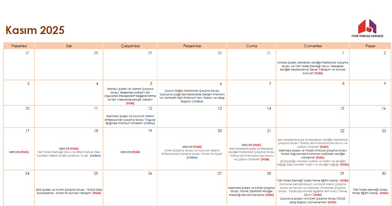 Türk Toraks Derneği Kasım 2025 Etkinlik Takvimi