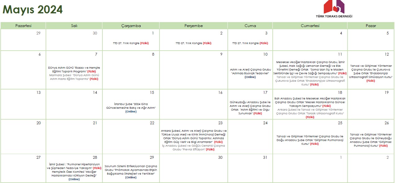 Türk Toraks Derneği Mayıs 2024 Etkinlik Takvimi