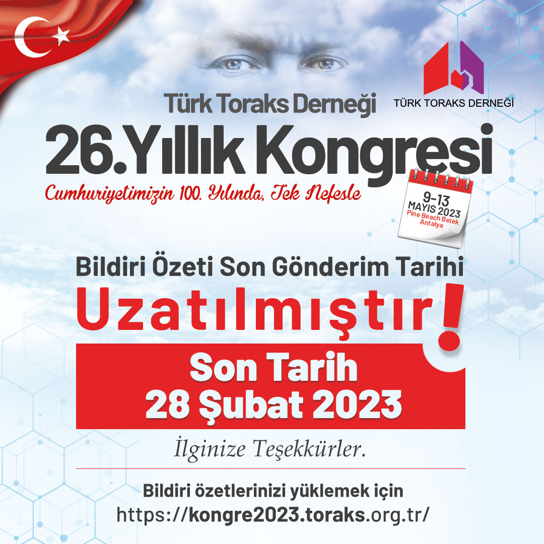 Türk Toraks Derneği 26. Yıllık Kongresi Bildiri Özeti Son Gönderim Tarihi Uzatılmıştır!