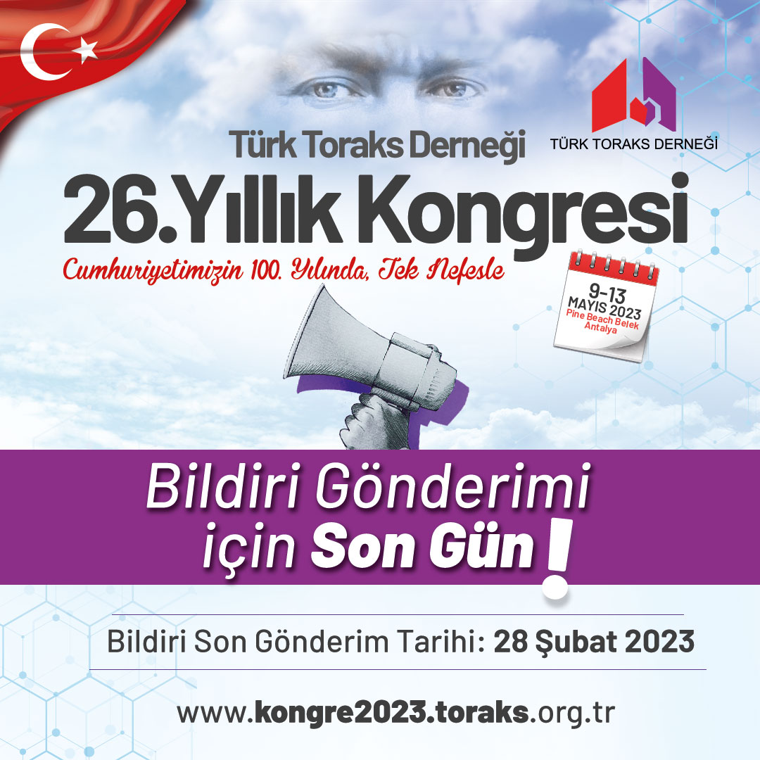 Türk Toraks Derneği 26. Yıllık Kongresi Bildiri Gönderimi İçin Son Gün!