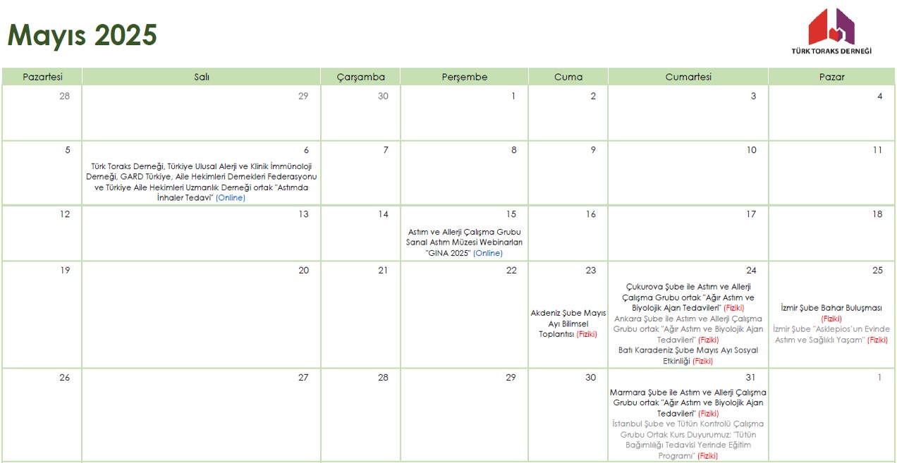 Türk Toraks Derneği Mayıs 2025 Etkinlik Takvimi