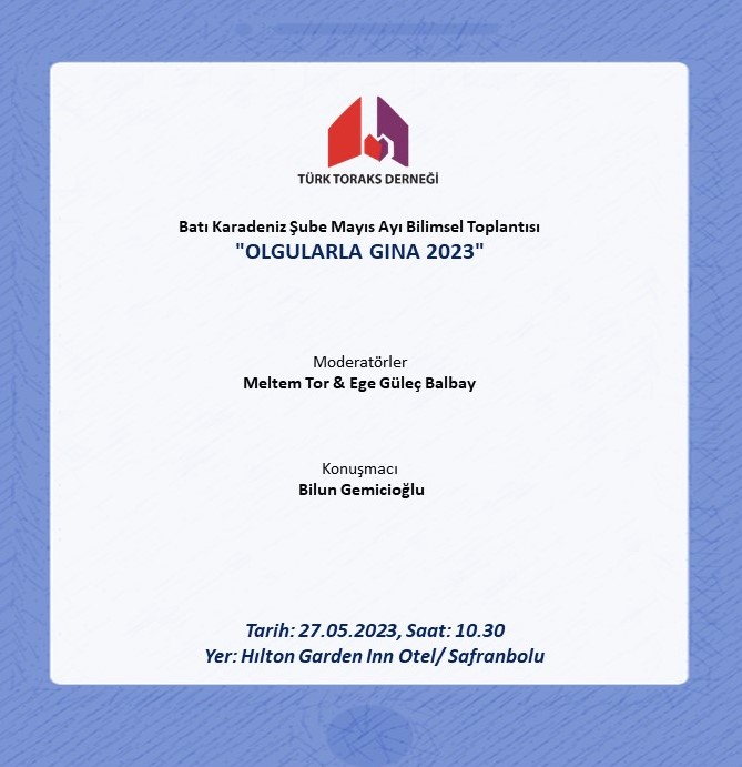 Türk Toraks Derneği Batı Karadeniz Şubesi Mayıs Ayı Bilimsel Toplantı Duyurumuz: "OLGULARLA GINA 2023"