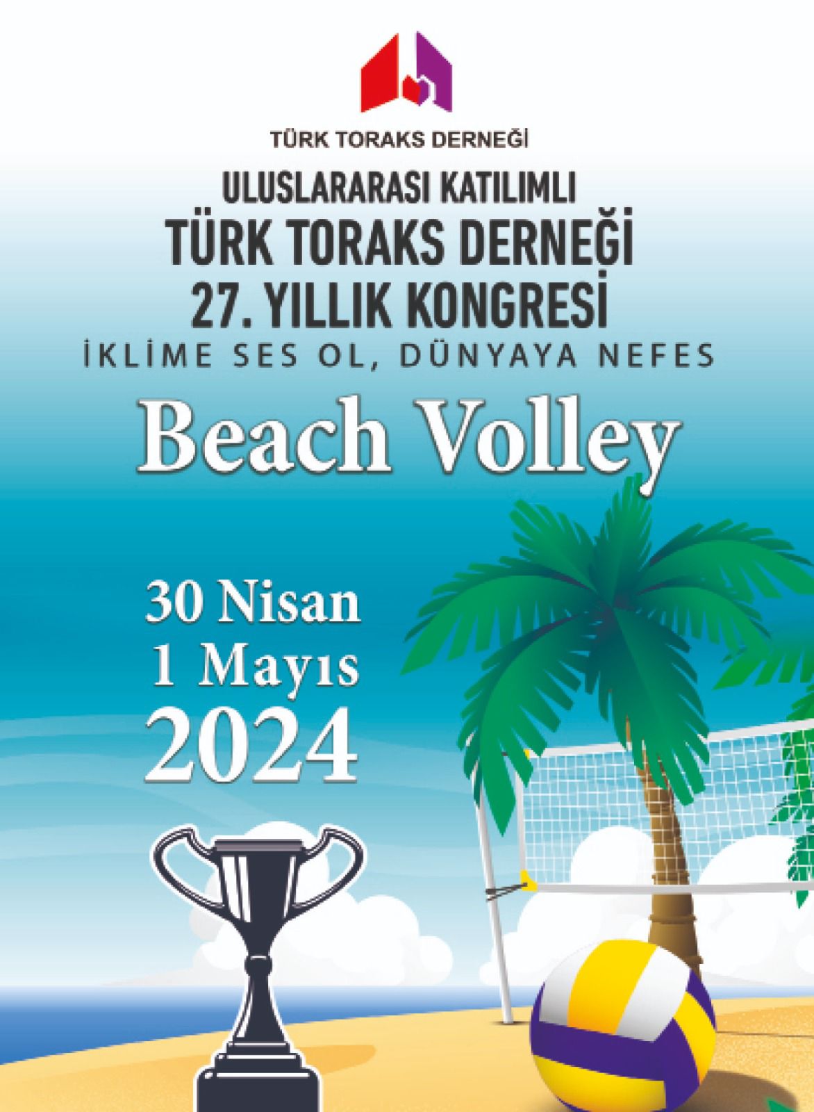 Türk Toraks Derneği 27. Yıllık Kongresi sosyal programı kapsamında 30 Nisan-1 Mayıs 2024 tarihlerinde 18.30-19.30’da düzenlenecek olan Plaj Voleybolu Turnuvası’na tüm üyelerimizi bekliyoruz!