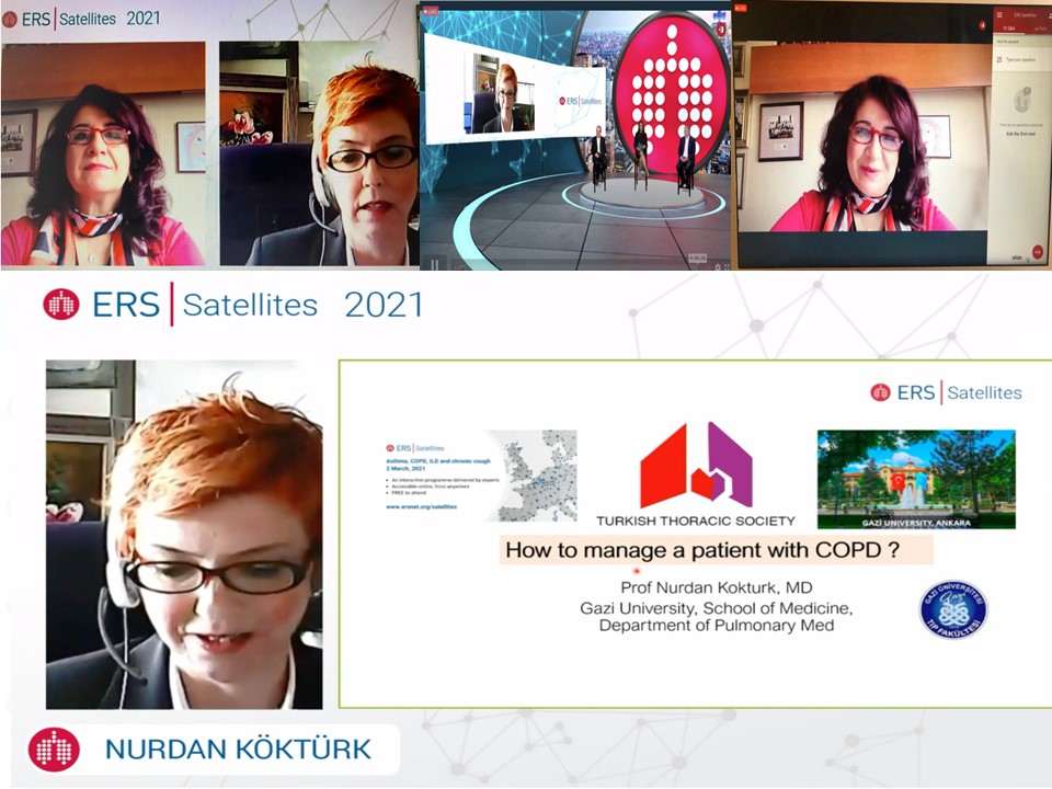 Avrupa Solunum Derneği (ERS) 4.Satellite Programı, 2 Mart 2021 tarihinde online olarak gerçekleştirildi. Program konu başlıkları Astım, KOAH, Kronik Öksürük ve İnterstisyel Akciğer Hastalıkları olarak belirlenmiş olup, ülkemizi ve derneğimizi, oturum başkanı ve konuşmacı olarak sırasıyla Dr. Arzu Yorgancıoğlu ve Dr. Nurdan Köktürk temsil etmiştir.
