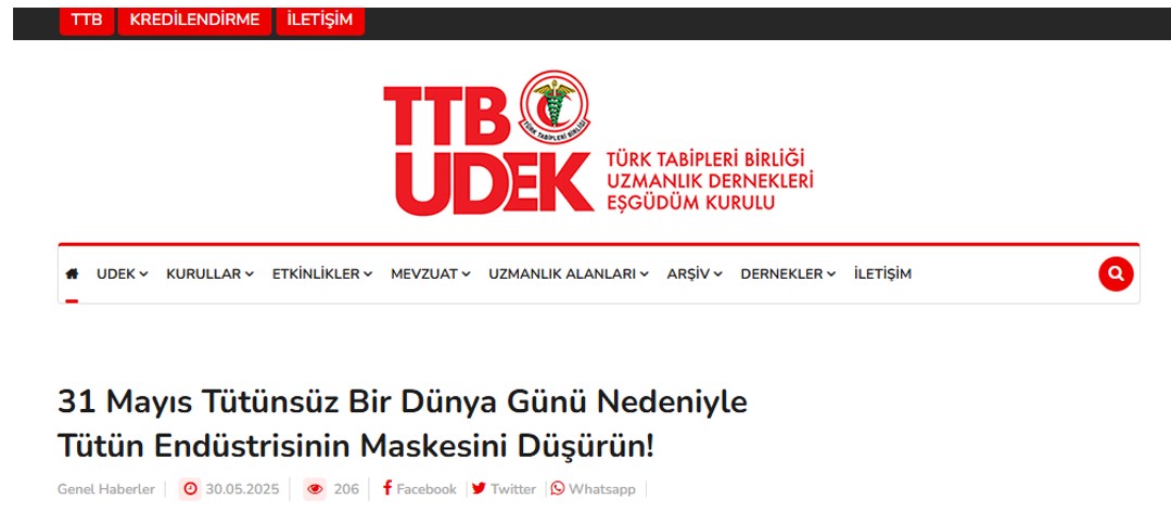 TTB UDEK "31 Mayıs Tütünsüz Bir Dünya Günü Nedeniyle Tütün Endüstrisinin Maskesini Düşürün!" Bildirisi