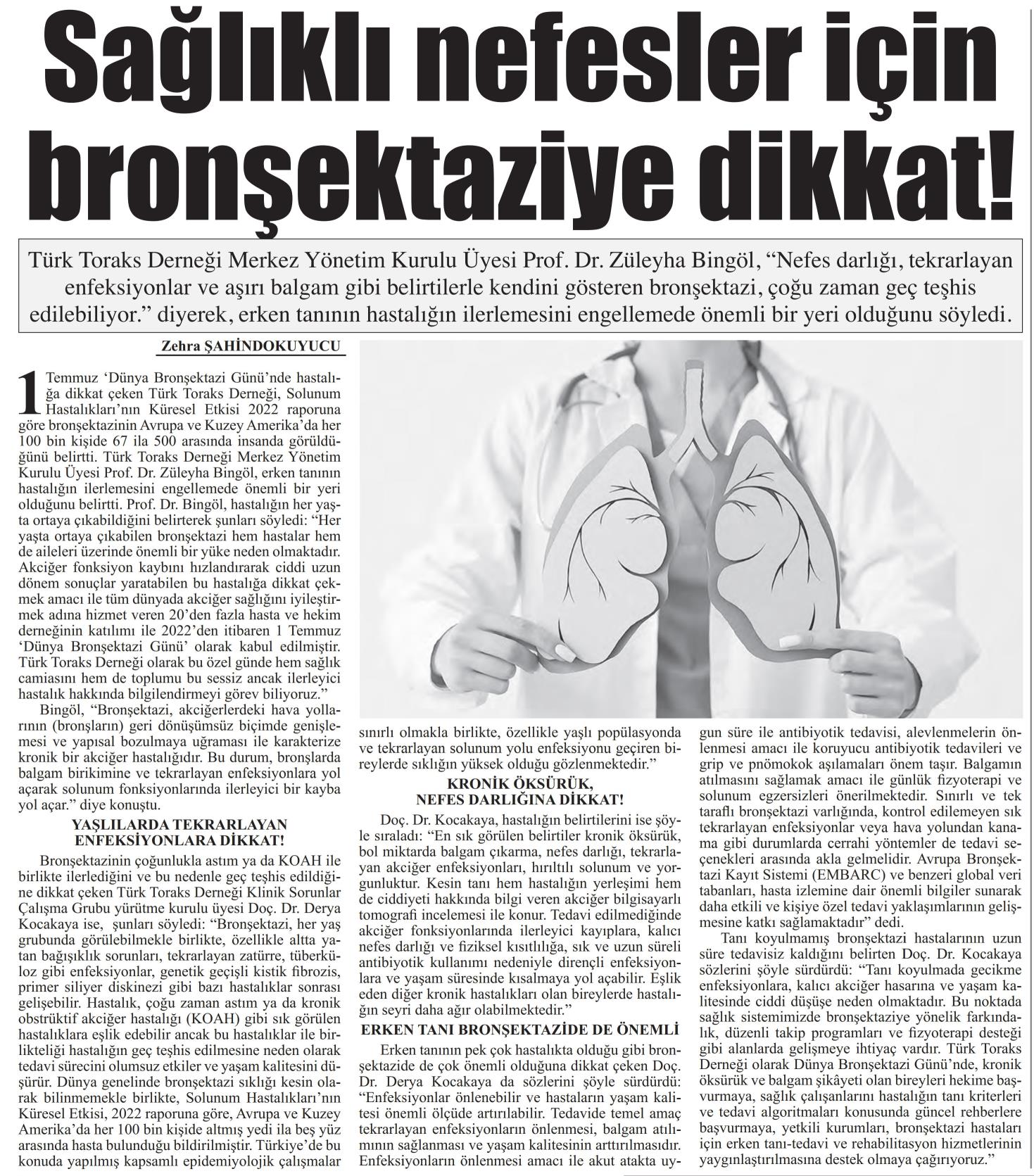 Basında Türk Toraks Derneği Klinik Sorunlar Çalışma Grubu "1 Temmuz Dünya Bronşektazi Günü" Basın Bildirisi