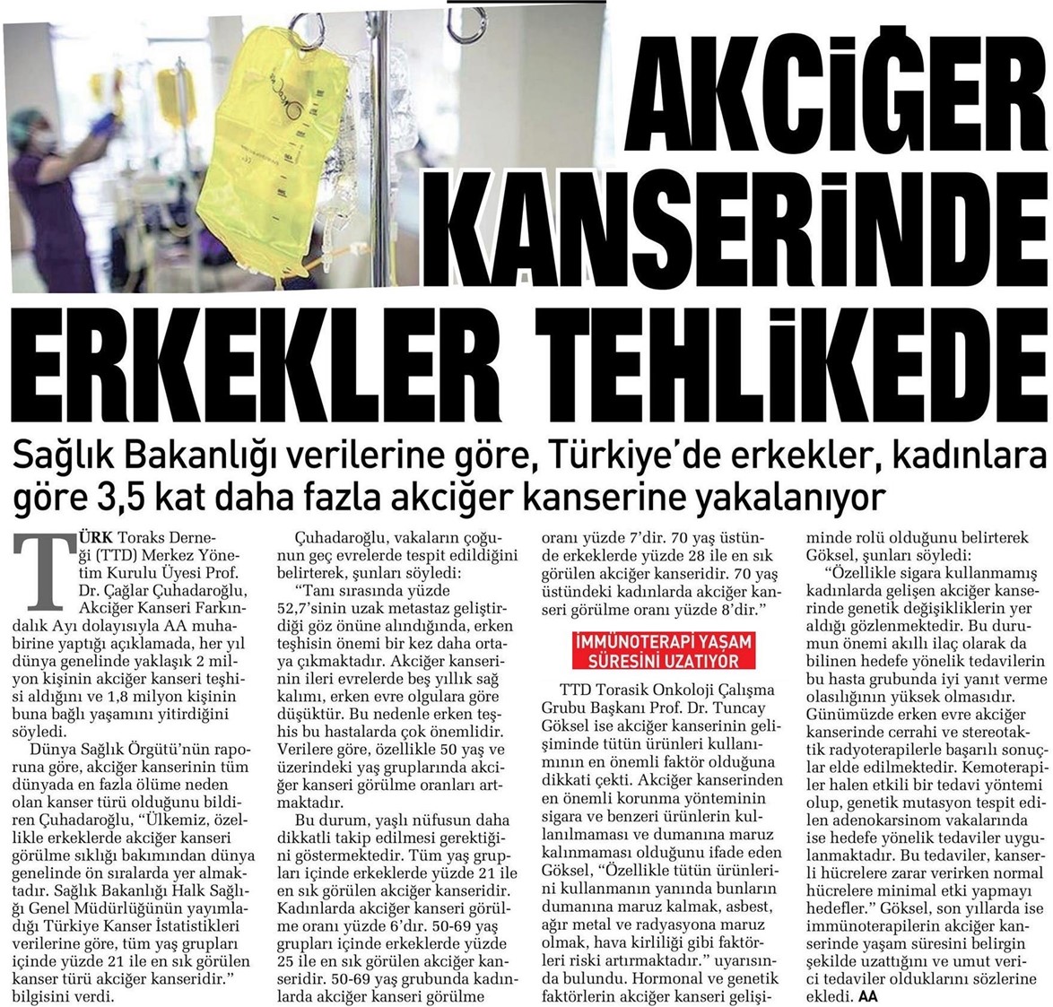 Basında Türk Toraks Derneği "1-30 Kasım Akciğer Kanseri Farkındalık Ayı"
